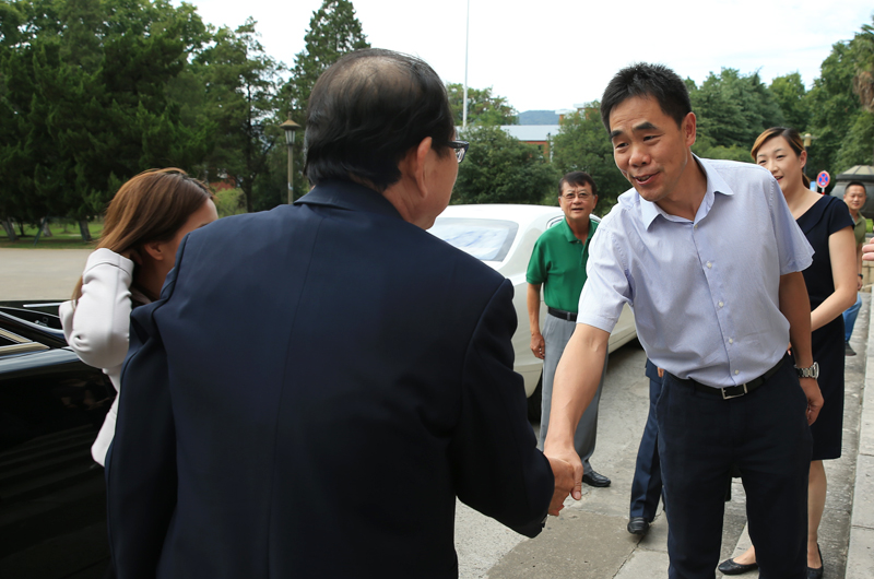 院党委书记陈国祥在西司令台迎接泰国法政大学健康科学学院院长Kampol Ruchiwit博士一行