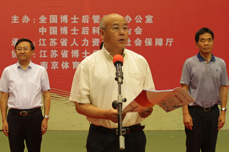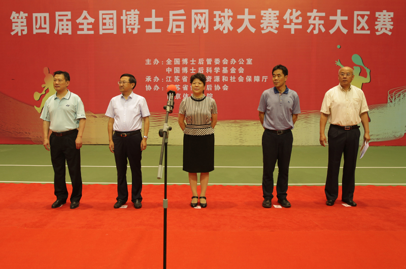 9月3日,第四届全国博士后网球大赛华东大区赛在我院开拍。当天上午,大赛举行了开幕式。省博士后协会理事长周广侠,院党委书记陈国祥,省人力资源与社会保障厅副厅长朱从明,院党委副书记、副院长汤岩,副院长金松出席开幕式。周广侠理事长宣布比赛开始,朱从明副厅长和汤岩副院长为比赛致辞。省人力资源与社会保障厅专家和国际合作处处长张永祎主持开幕式,院党委组织部部长、本次比赛裁判长殷光在开幕式上宣读比赛相关事项和规则。来自江苏、上海、山东、江西和安徽等华东5省的9支队伍参加了本次比赛。