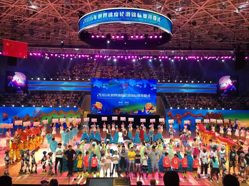 9月10日下午,万众期待的2016年世界速度轮滑锦标赛在南京正式揭幕。下午3时,一场盛大而又别开生面的开幕式隆重展开,来自全球40个国家和地区的近3000名轮滑运动员和爱好者现场共同见证这璀璨夺目的震撼演出。