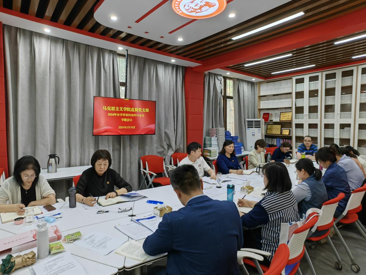 为进一步加强学院师德师风建设,培育高尚师德,树立良好师风,5月10日下午,马克思主义学院直属党支部在思政课教学实践中心举办2024年春季学期师德师风建设专题会议。会议由学院党支部书记张亚军主持。学院院长葛翠柏,副书记、副院长石红霞和全体思政课教师参加了本次会议。