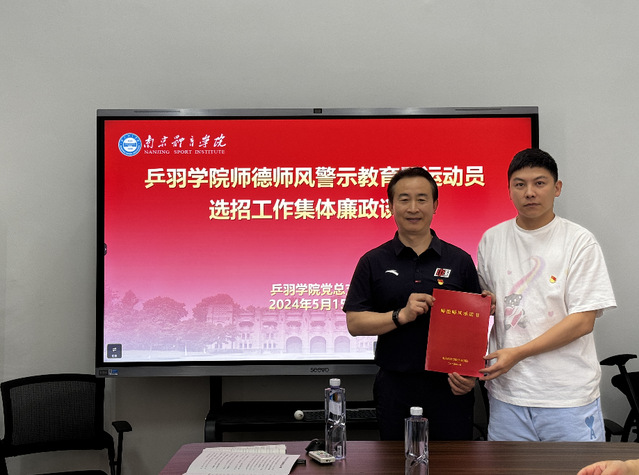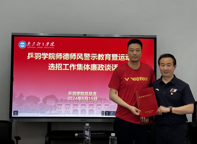 为更好的把握师德师风建设工作面临的新形势、新要求,全方位全过程强化师德养成,同时针对2024年运动员选招工作进行廉政提醒,5月15日上午,乒羽学院在综合馆120会议室召开了师德师风警示教育大会暨运动员选招工作集体廉政谈话。出席本次大会的有学院全体管理干部和一二三线教练员,会议由党总支副书记吴晓明主持。