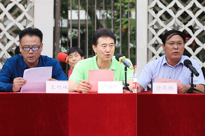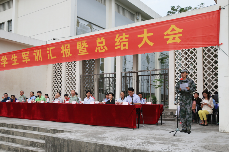 左:院保卫处副处长、军训工作领导小组副组长、军训大队政委王竹林作军训工作总结;中:教务处处长严海平宣读表彰决定;右:院学工处副处长、院军训工作领导小组副组长、院军训大队政委唐存楼主持大会