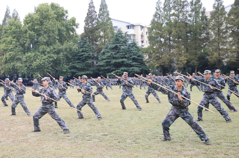 2016级新生军训工作于9月8日至9月21日分别在灵谷寺校区和仙林校区同时开展,施训官兵24名,参训新生930余名。为期两周的军训组织实施了以三大条令、队列训练、分列式、军体拳、匕首操、盾牌操、棍术等为主要内容的军事训练,完成新生军事理论授课任务,开展军事、安全和急救知识教育等活动。在院领导、施训部队领导的高度重视和教官、学生的共同努力下,军训工作组织有力、组训科学、效果显著,得到了领导的肯定和学生的好评。