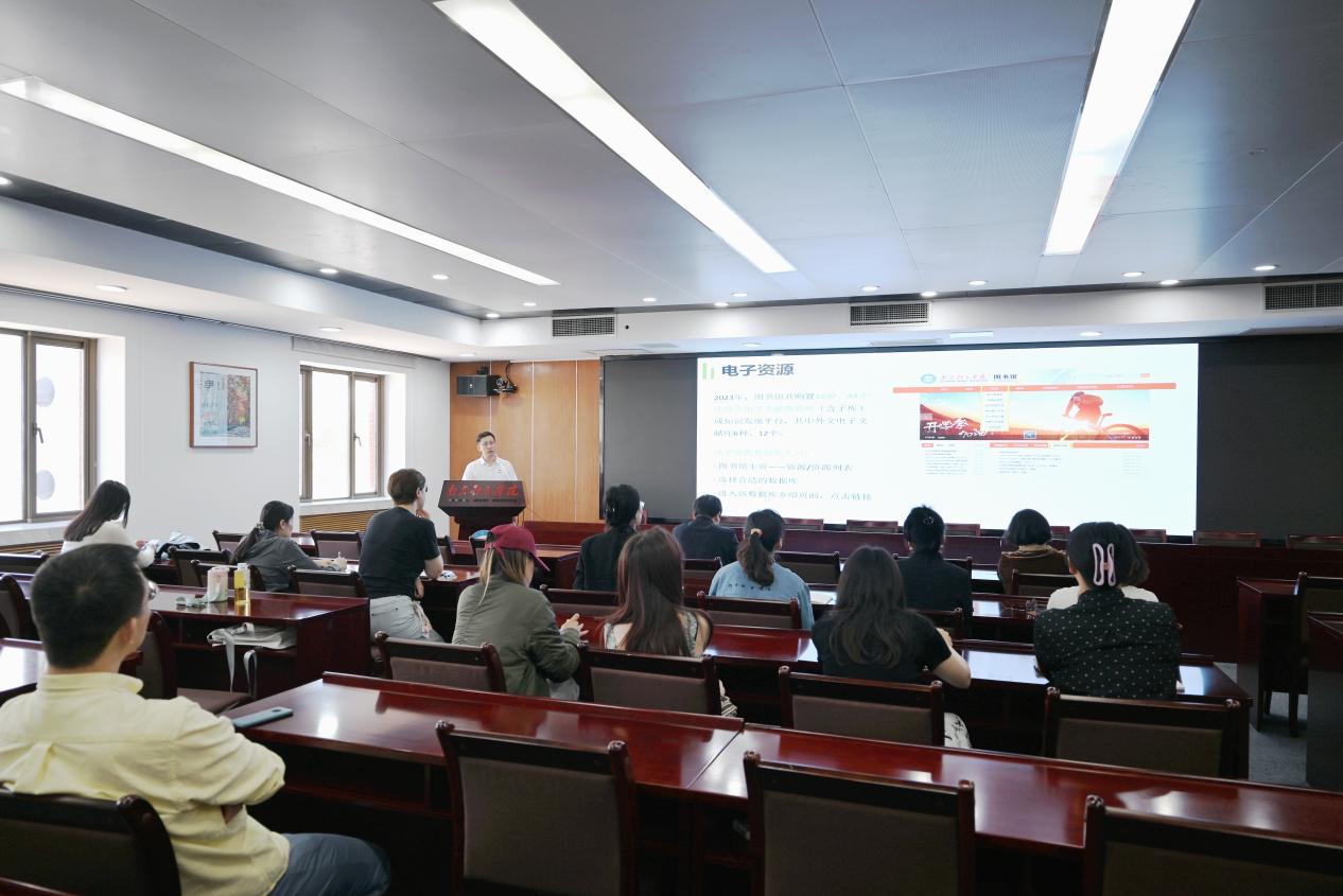 图书馆图书文献与数字资源部主任徐鹏就图书馆馆藏资源的基本情况、纸质图书查询借阅方法及技巧、PA视讯电子文献数据库的类型及使用策略、校外访问电子文献资源的途径及注意事项等内容进行了针对性的宣传讲解,并对参会老师提出的问题做了解答。