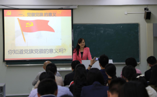 最后,沈书记以这次党旗党徽的党课教育为契机,结合体育系实际工作,要求每一位体育系党员,要勇于戴党徽,亮出自己的党员身份,接受群众监督,在日常工作学习中,要严格要求自己,争做合格党员。