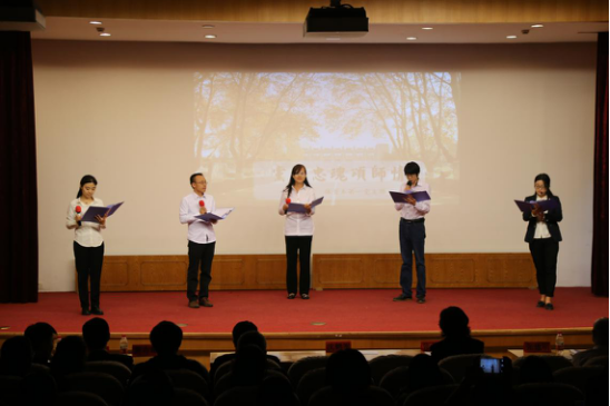 10月18日晚,根据“两学一做”部署安排,体育系党总支在院图书馆报告厅举行了“高歌咏党辉”为主题的诗歌朗诵活动。气势磅礴的长征诗词、满含深情的师情党歌、催人奋进的我的中国梦,体育系党总支下属各党支部党员胸带党徽,陆续走上舞台,放声高诵,讴歌中国共产党人在逆境中坚强不屈,带领中国人民取得一个又一个胜利的光辉历程。
