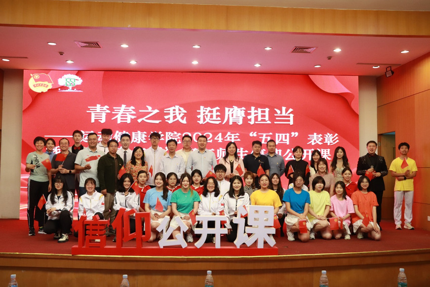为引领广大青年深入学习贯彻习近平总书记五四重要寄语精神,表彰2023-2024学年度运动健康学院涌现出的先进集体、先进个人,团结带领广大青年成长为有理想、有担当、能吃苦、肯奋斗的新时代好青年。5月16日晚,运动健康学院在图书馆第一报告厅举办青春之我 挺膺担当——“五四”表彰大会暨“运康青年说”师生信仰公开课。运动健康学院党总支书记丁永亮、院长汤强、党总支副书记阚妮妮、副院长赵彦出席本次活动,学院青年教师代表和团员青年代表参加活动。