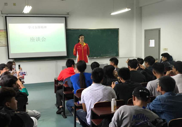 10月20日下午,里约奥运会冠军中国女排队员张常宁来到运动系21645班的课堂,和同学们互动交流,为大家带来了硕大的惊喜和满满的正能量。