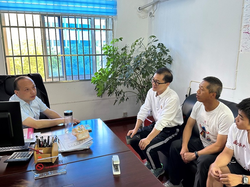 周岳飞对我院师生一行表示欢迎。周岳飞介绍了岳西县教育及体育师资队伍基本情况。岳西县认真贯彻落实《关于全面加强和改进新时代学校体育工作的实施方案》,坚持“健康第一”教育理念,全方位推动县域中小学体育工作。岳西县在全县范围内推广中小学跳绳运动,跳绳项目已经成为岳西县教育一大特色和亮点。本次通过举办2024年全国跳绳联赛分站赛,进一步发展并推动本地跳绳体育运动事业。周副局长表示,欢迎更多有志于体育教育和体育传媒优秀毕业大学生加入到本地学校和单位,希望通过校地携手,实现优势互补、资源共享,共同探索共建共育校地合作新路径。