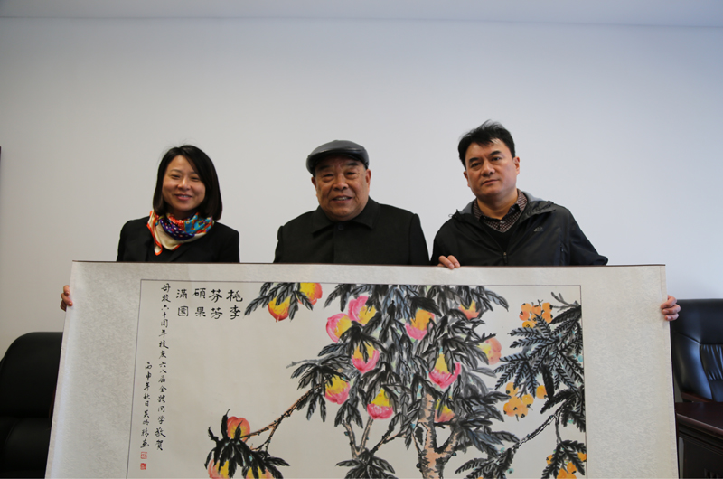 吴老向学院赠送他专为校庆而作的画《桃李芬芳硕果满园》