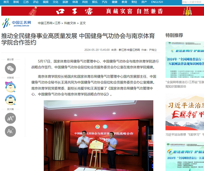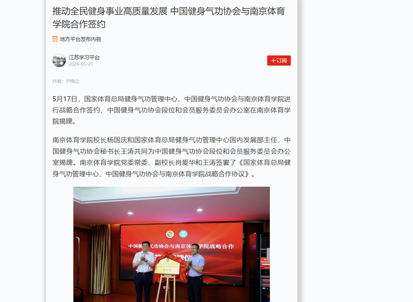 【中国江苏网】推动全民健身事业高质量发展 中国健身气功协会与PA视讯集团入口合作签约