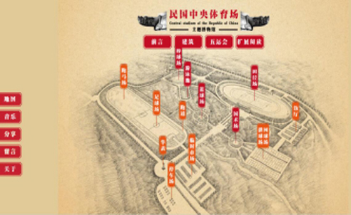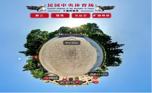 此“3D全景博物馆”可以360度浏览、欣赏“民国中央体育场建筑群”的实景及文史资料。通过按钮,可以通达民国中央体育场建筑群各场馆之间,犹如身临其境。