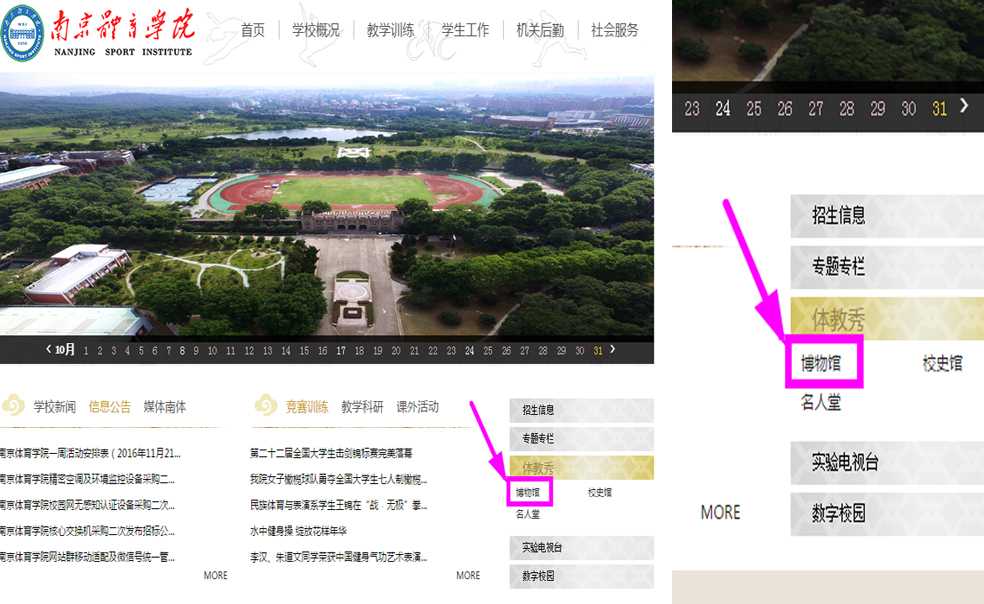 首页右侧“体教秀——博物馆”按钮