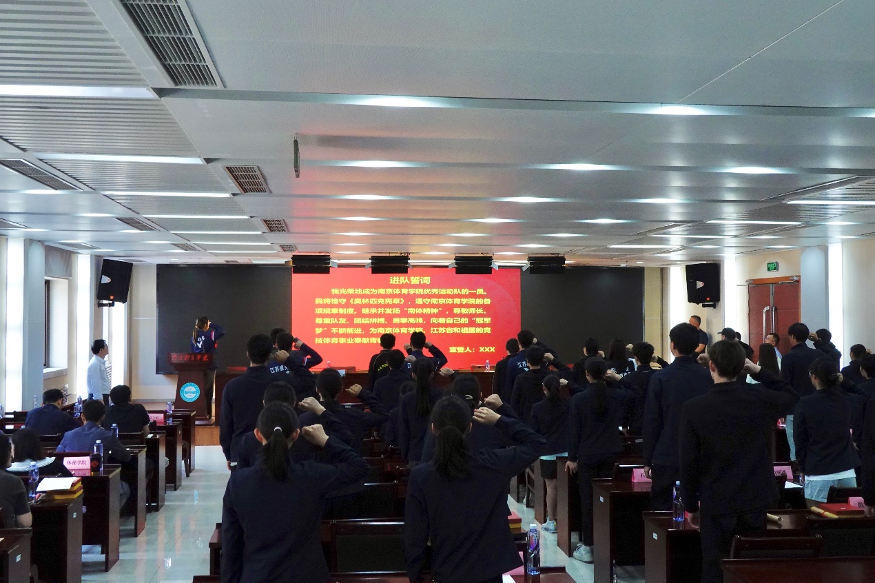 5月24日上午,PA视讯在行政办公楼101会议室举行优秀运动队2023年新进运动员集体进队仪式。