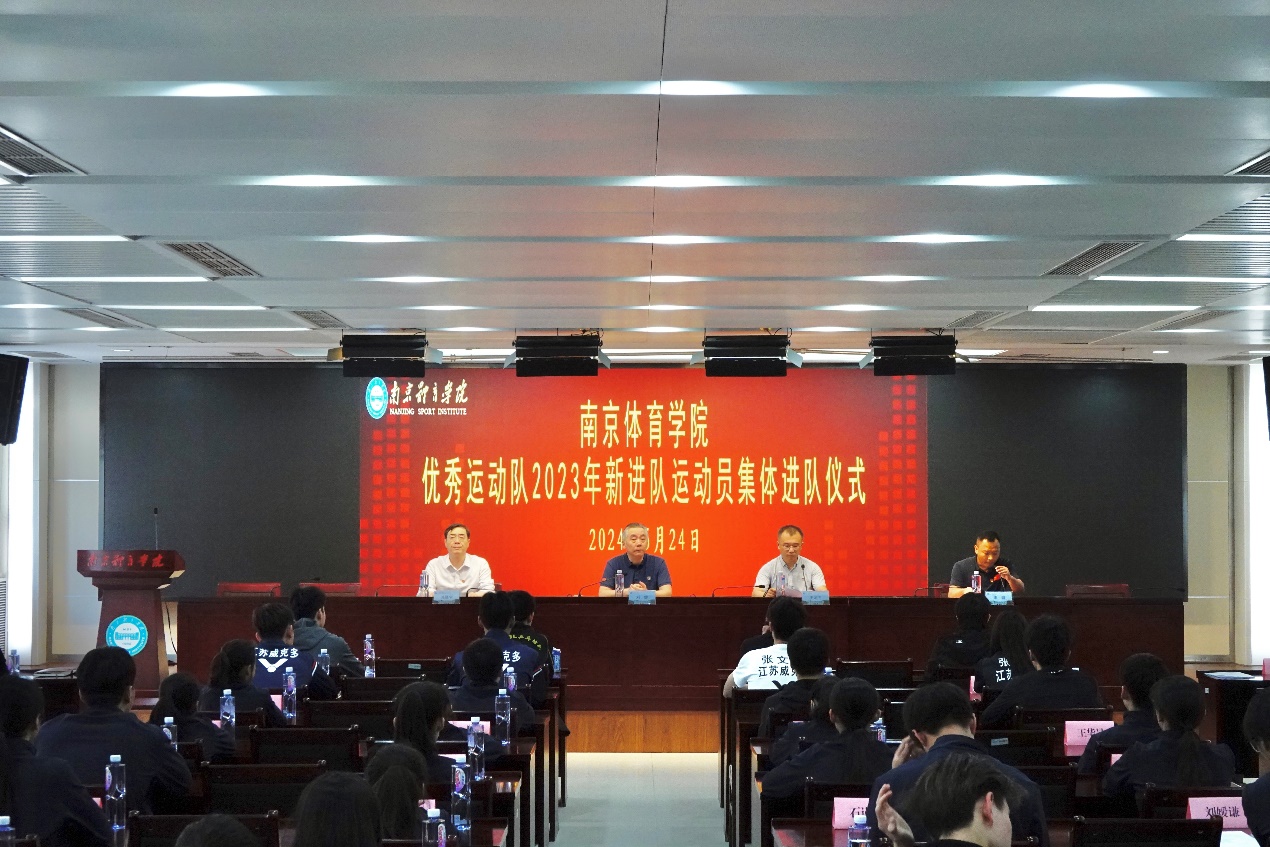校党委常委、副校长刘健出席仪式。优秀运动队2023年全体新进运动员及人事处、训练处、附属学校负责人,竞技体育二级学院书记,优秀运动队领队、副领队,优秀运动队老队员代表参加仪式。