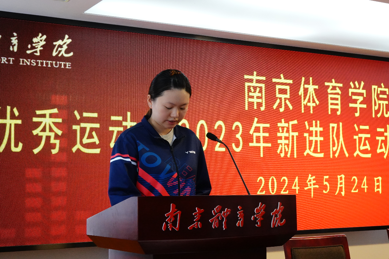 副校长刘健代表校党委、校行政向50名新进队运动员表示了热烈的欢迎和祝贺。他在讲话中充分肯定了这批运动员在试训及进队选拔中的优秀表现,并对他们的未来提出了四点希望。一是心系祖国,为建设体育强国贡献力量。要始终以党的体育方针为引领,以学校第九次党代会精神为指南,树立远大理想,厚植爱国情怀,坚定人生目标,激发前进动力。二是刻苦训练,创造更加辉煌的竞技体育成绩。要从先进事迹中汲取前进动力,以一名职业运动员的标准和素养要求自己,自觉自律,刻苦专注,不折不扣地完成每节课的训练任务,做好点滴积累,早日将世界冠军、奥运冠军的梦想变为现实。三是团结守纪,将奥林匹克精神发扬光大。要在训练、比赛、生活中做真正的奥林匹克精神践行者,尤其要把反兴奋剂意识深深植入脑海,为维护奥林匹克的神圣和竞技体育的纯洁贡献应有的力量。四要全面发展,争做新时代优秀运动员。要一手抓好训练备战,一手抓好文化学习,积极参与学校的各类活动,开阔眼界和心胸,提高自己的理论水平、创新能力,为建设体育强省、体育强国添砖加瓦。