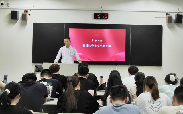 课堂上,渠老师以深入浅出的方式从为什么建设生态文明、建设什么样的生态文明、怎样建设美丽中国三个方面系统阐释了“建设社会主义生态文明”的历史背景、时代意义与进路举措。渠老师借助生动的图片、视频、图表,将抽象的理论知识具象化,使同学们能够更直观、更深入地理解加强生态文明建设的重要意义。同时,渠老师注重与学生的互动,通过启发、引导式教学方法,引导学生们积极思考、主动发言,激发了学生们的学习兴趣和主动性。