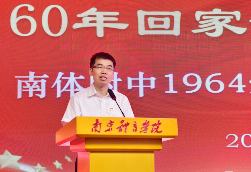 校友代表、PA视讯集团入口原副院长蔡成华发表讲话。他感谢学校领导及相关职能部门对这次联谊活动的高度重视和隆重接待,激情回忆起60年前,小小少年们满怀理想,抛洒汗水,在南体度过的难忘岁月。青春献给南体,洒下一片深情,他祝福校友们此次相聚愉快,并期待70周年再相聚。