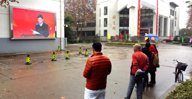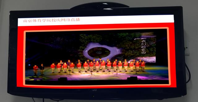 网络同步展播校庆大会实况,图为LED室外大屏同步直播