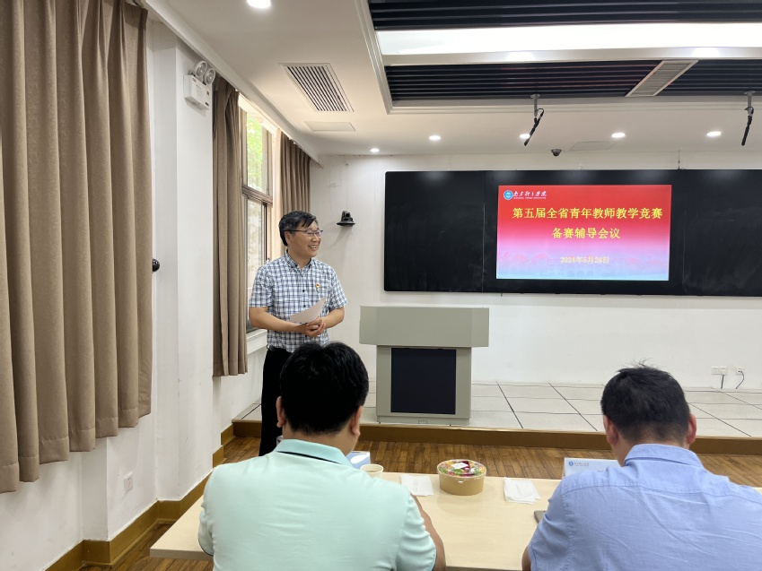 沈扬围绕青教赛评分细则,从课程思政、教学内容、教学目标、教学设计、教学板书、课件、语速、教态等方面对四位参赛教师的表现进行一一点评,并提出了针对性的改进意见。参赛教师纷纷表示受益匪浅,对接下来的青教赛备赛和将来的教学实践都有很大的启发和指导意义。