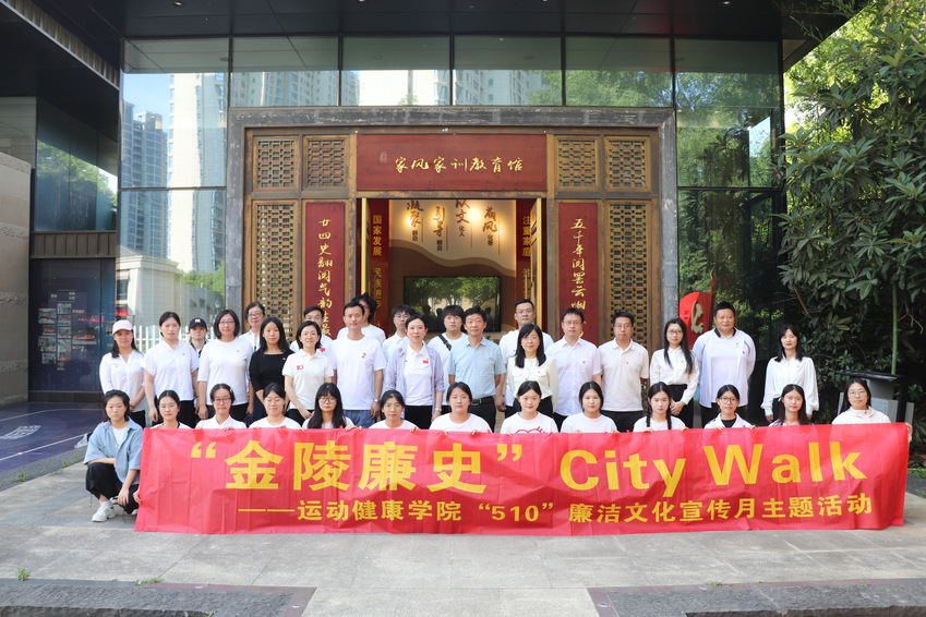 为推进党纪学习教育走深走实,进一步加强党风廉政建设,筑牢党员干部廉洁自律和拒腐防变思想,强化党员干部的党性、党纪及廉洁意识。5月29日下午,运动健康学院党总支组织学院班子成员、支部书记、教师党员代表和学生党员代表开展“金陵廉史”City Walk 主题党日活动。