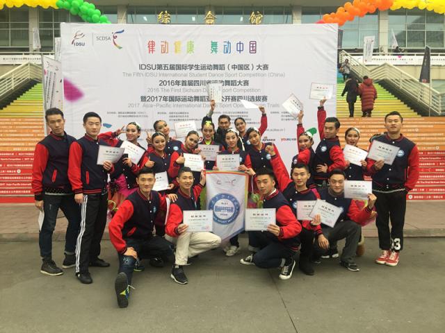 12月15至19日,体育舞蹈队一行23人赴成都参加IDSU国际运动舞蹈(中国区)大赛暨教学成果展演。来自全国各地的近两千名选手参加了比赛,参与包括体育舞蹈、爵士舞、东方舞在内的多个项目的角逐。大赛通过IDSU官方网站进行了全球直播。