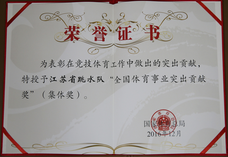 跳水队被授予“全国体育事业突出贡献奖” (集体奖)