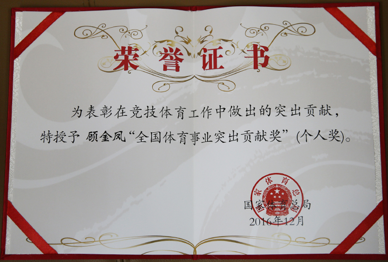 跳水队领队顾金凤被授予“全国体育事业突出贡献奖”(个人奖)