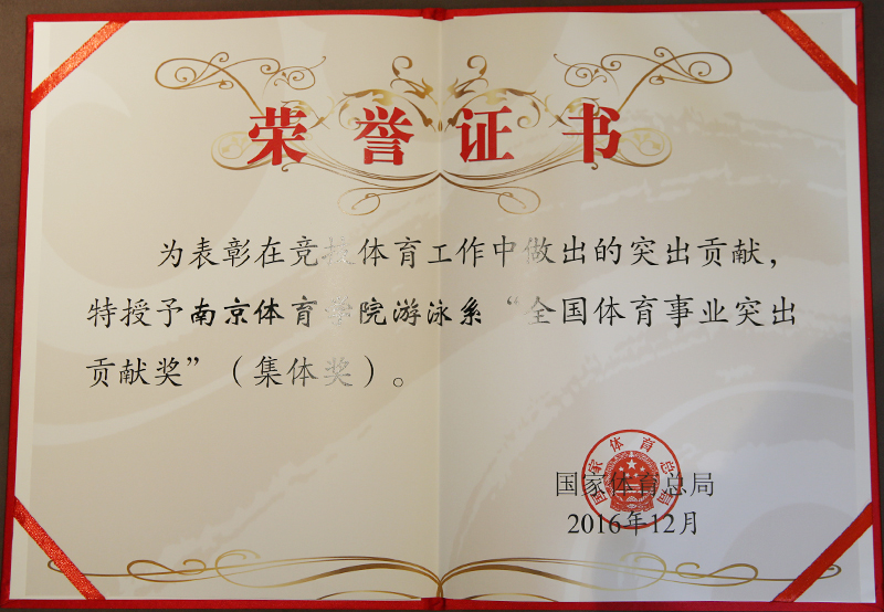 游泳系被授予“全国体育事业突出贡献奖” (集体奖)