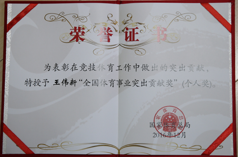 击剑自行车系副主任王伟新被授予“全国体育事业突出贡献奖”(个人奖)