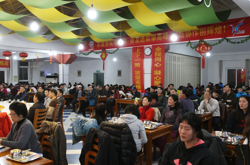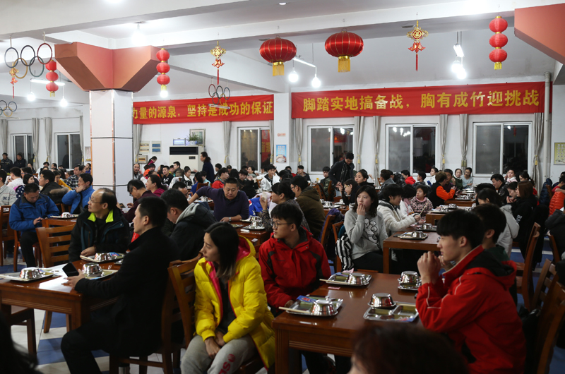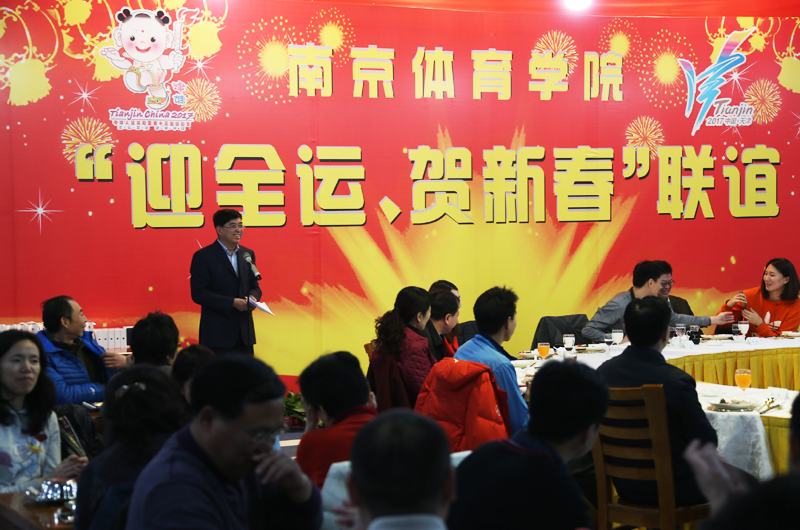 1月28日是农历2017年春节,为了备战十三届全运会决赛,春节期间学院优秀运动队将放弃春节休假,坚持冬训。为切实做好备战工作,同时也让大家过一个祥和喜庆的春节, 1月25日,也是农历的腊月二十八日,在运动员食堂,隆重举行PA视讯集团入口“迎全运、贺新春”联欢活动。省体育局副局长王伟中,我院领导陈国祥、杨国庆、汤岩、史国生、李江、蒋宏伟、金松、肖爱华、黄步龙出席活动。省体育局相关处室主要领导,院机关、后勤主要负责人,竞技体育系一、二线教练员、运动员,各队队医和管理干部参加了联欢。