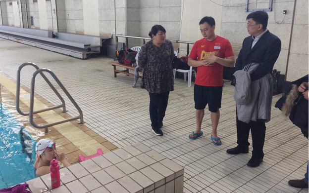 院领导在游泳队看望运动员、教练员