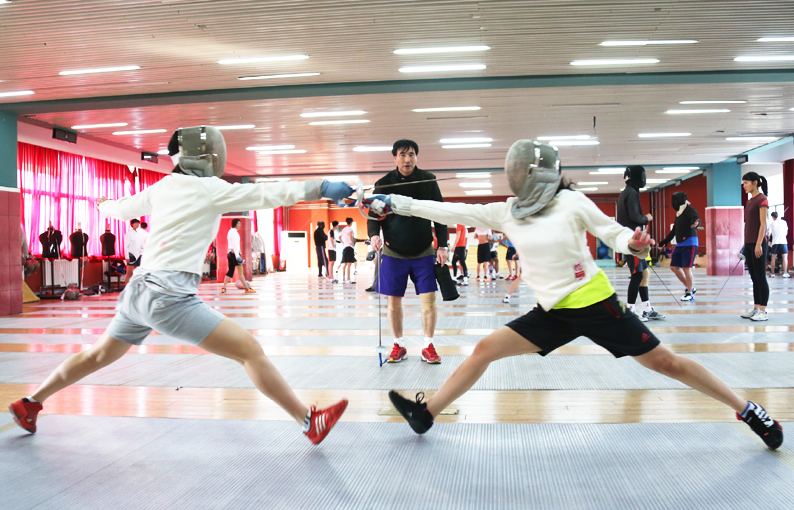 击剑,是从古代剑术决斗中发展起来的体育项目,运动员穿戴击剑服装和护具进行比赛。有花剑、重剑、佩剑三个剑种。江苏击剑队建于1958年,是中国击剑的一支劲旅,培养了一大批优秀运动员和教练员,中国第一枚奥运会击剑个人金牌和第一枚团体金牌的主力队员都来自江苏,为中国和江苏体育事业的发展作出了杰出贡献。天津全运会,江苏击剑健儿将秉承优良传统,刻苦训练,顽强拼搏,再创佳绩。