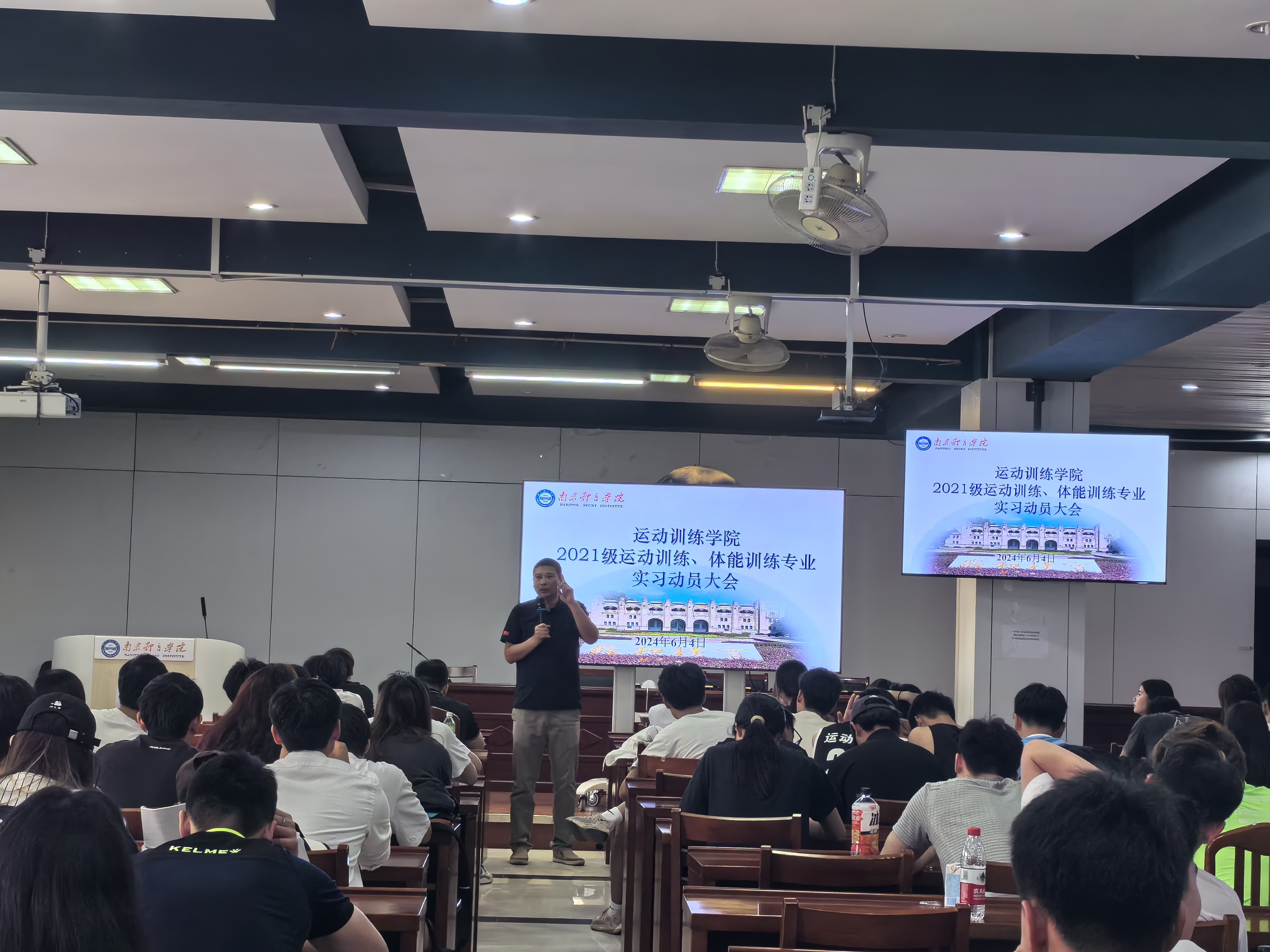 6月4日下午,运动训练学院在仙林校区大学生活动中心召开2021级实习生专业实习动员大会。运动训练学院副院长张明、教学秘书王豫宁、2021级辅导员吴海艳及2021级全体学生参加会议,会议由张明主持。