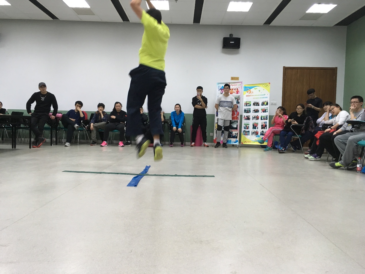 第二天是准备活动(warm up)与整理活动(cool down)的专场教学。准备活动是训练的开端,不仅针对性提高核心区温度,而且激活关节灵活性、稳定性和专项肌群。整理活动能帮助机体在训练后加速恢复。首先,同学们了解了准备活动和整理活动的背景知识。接着是实操练习,同学们切身体会了所有动作。