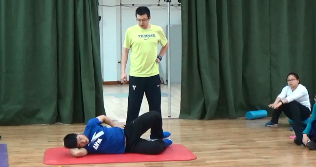 第三天上午,同学们进一步学习准备活动与整理活动。本次课将重点更多的放到了准备活动上,从本体感觉、关节灵活性、关节稳定性以及神经系统激活等层面进行了逐一的理论和实践学习。