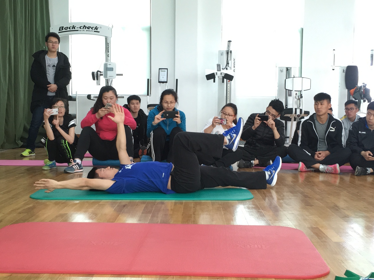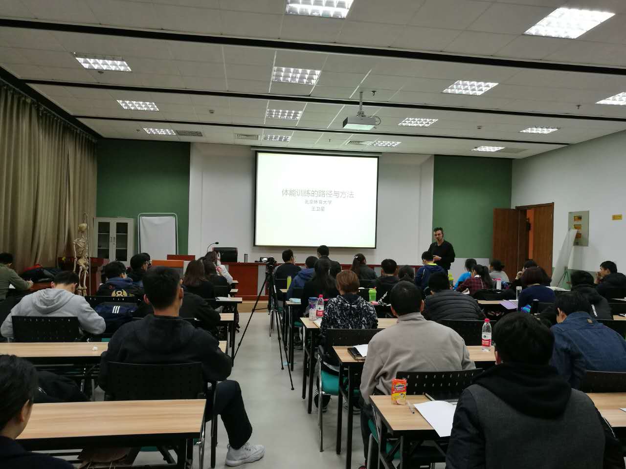 这一周我们请到的是北京体育大学体能训练博士生导师——王卫星教授,他为我们带来了为期一周的专项体能训练课。来自北京体育大学的王卫星教授长期为各个国家队提供体能训练,具有雄厚的专业知识和丰富的实践经验,他的到来吸引了许多学生和老师前来旁听。