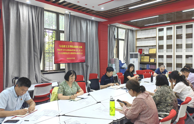 6月20日上午,马克思主义学院直属党支部在思政课实践中心召开理论学习中心组2024年第七次(扩大)学习暨党纪学习教育警示教育大会。深入学习贯彻习近平总书记近期重要讲话、重要文章精神,围绕学习党章、《中国共产党纪律处分条例》(以下简称《条例》)和习近平总书记关于全面加强党的纪律建设的重要论述,结合典型案例剖析,组织开展警示教育。直属党支部书记张亚军主持会议。全体党员参加学习。