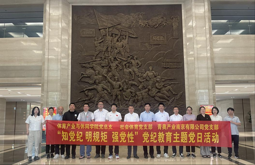 6月22日,体育产业与休闲学院党总支、南京青奥体育产业集团党支部联合开展党纪学习教育主题党日活动,持续推动党纪学习教育活动走深走实,让全体党员接受一次深刻的精神洗礼,进一步增强了全体党员全面从严治党永远在路上的思想自觉、政治自觉和行动自觉。体育产业与休闲学院领导班子、理论学习中心组全体成员,青奥产业南京有限公司党支部全体成员共同参加。