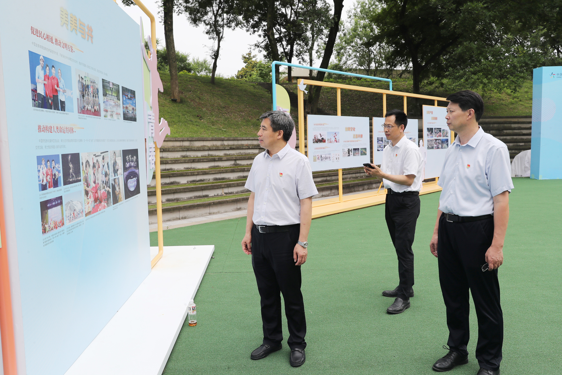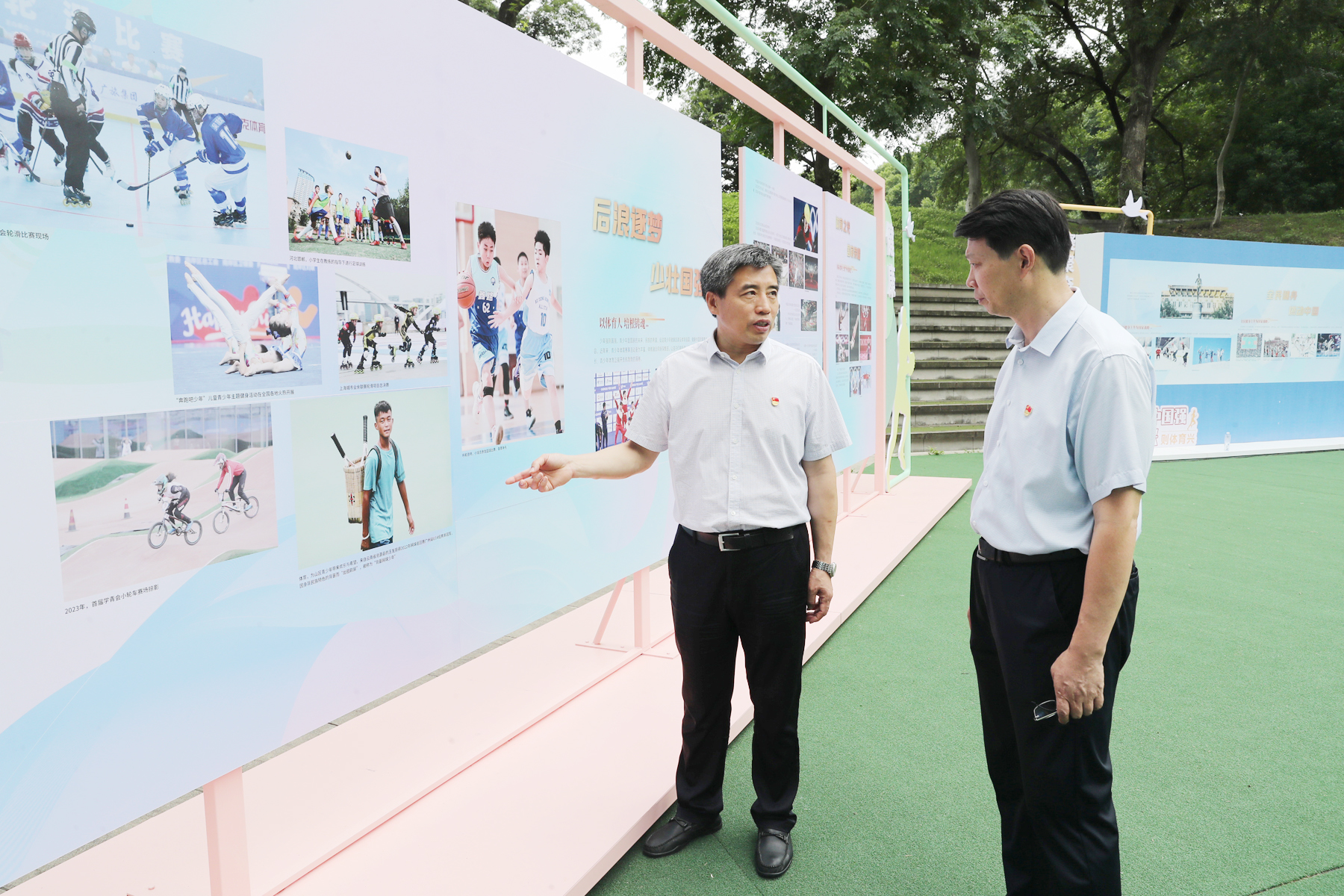 随后,刘红明来到“体育力量 中国精神”体育文化展”江苏站,兴致勃勃地参观了展览。该展览是中国奥委会“中华体育精神颂”之“体育力量 中国精神——体育文化展”全国巡展的江苏站活动,于6月24日至30日在灵谷寺校区国术场举行。展览回望了中国体育及江苏体育辉煌发展历程,重点展示党的十八大以来体育工作在习近平总书记和党中央的亲切关怀和指导下取得的突出成就。刘红明指出,要积极组织师生参观展览,引导大家深入了解新时代我国体育事业取得的辉煌成绩,激励大家坚定文化自信,投身体育强国建设伟业。要学习借鉴本次巡展活动的好经验好做法,依托学校厚重的文化底蕴、辉煌的办学成绩和鲜明的办学特色,持续推进学校文化建设工作,更好地推进高水平体育大学建设。