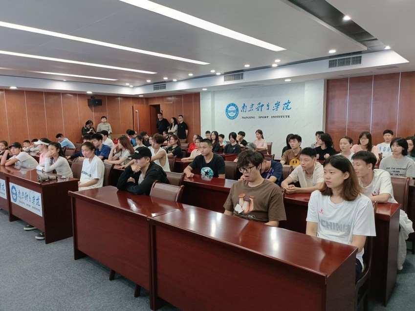 为加进一步加强运动员思想政治教育,深化对青少年运动员对体育精神的重要性认识,6月24日晚,江苏省体育信息中心(江苏省体育文化中心)、体育教育与人文学院和训练处于行政楼201联合举办“讲好体育故事,传承体育精神”系列讲座第一讲。省体育信息中心文化工作部部长陈玉坤、体育教育与人文学院副院长康晓磊,训练处李俊老师出席讲座。来自南体11个运动队的60余名运动员参与讲座。本次讲座由体育教育与人文学院教师邹欣主讲。