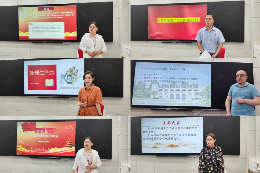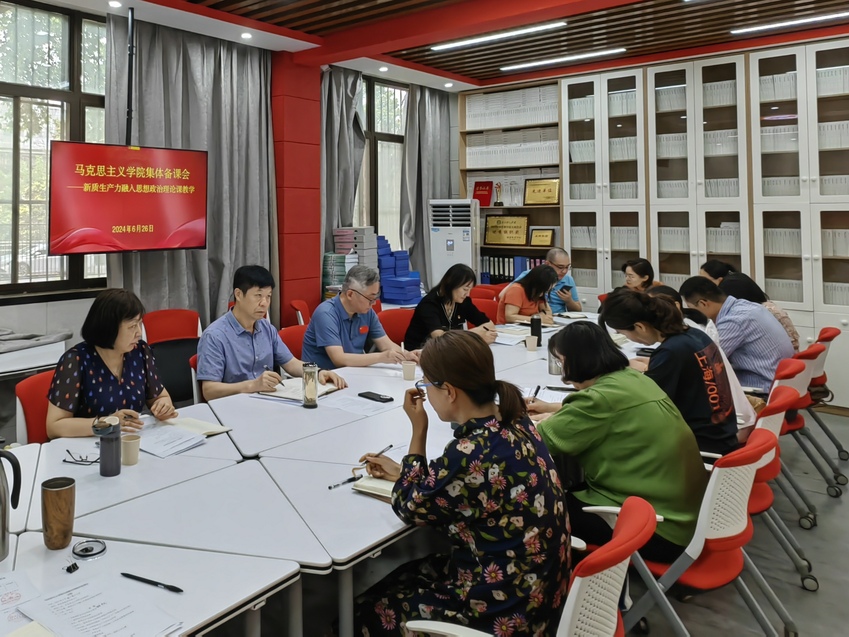 备课会上,学院五位教师从“新质生产力的提出与发展”“新质生产力的理论渊源和具体内涵”“原理角度解读新质生产力的重大价值和意义”“新质生产力的内涵特征”以及“新质生产力理论融入大学思政课教学的探索”五个方面就新质生产力进行了领学导读,并结合所授课程为什么融,融什么,怎么融进行交流研讨。