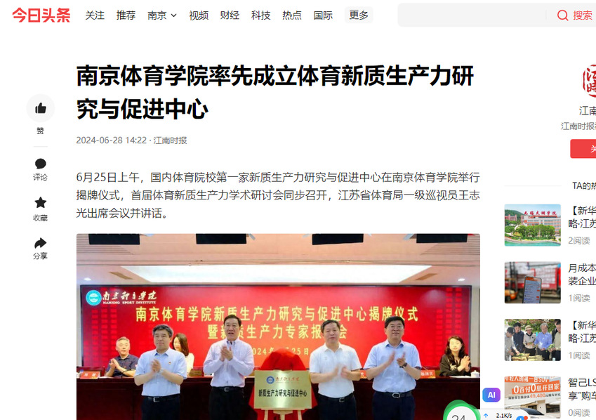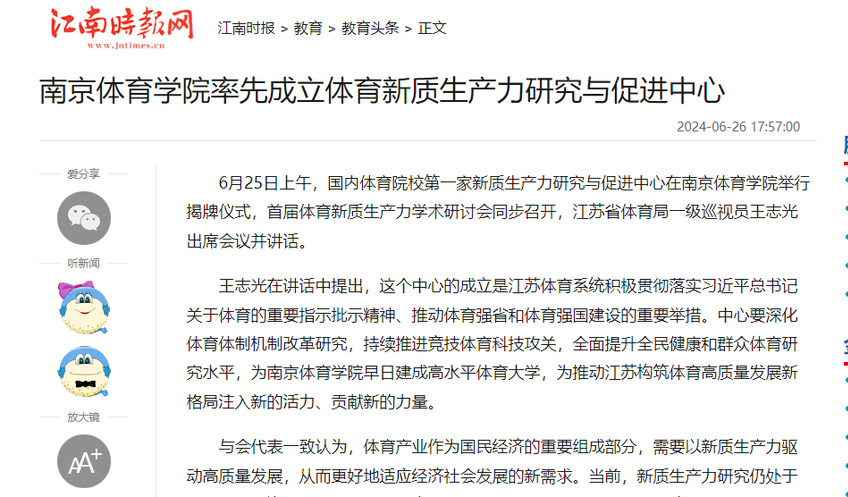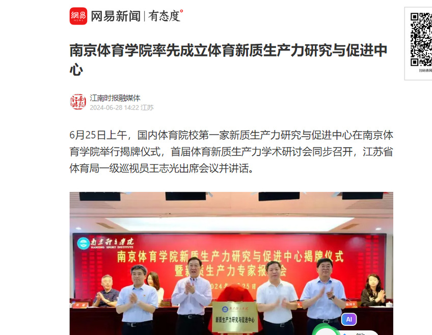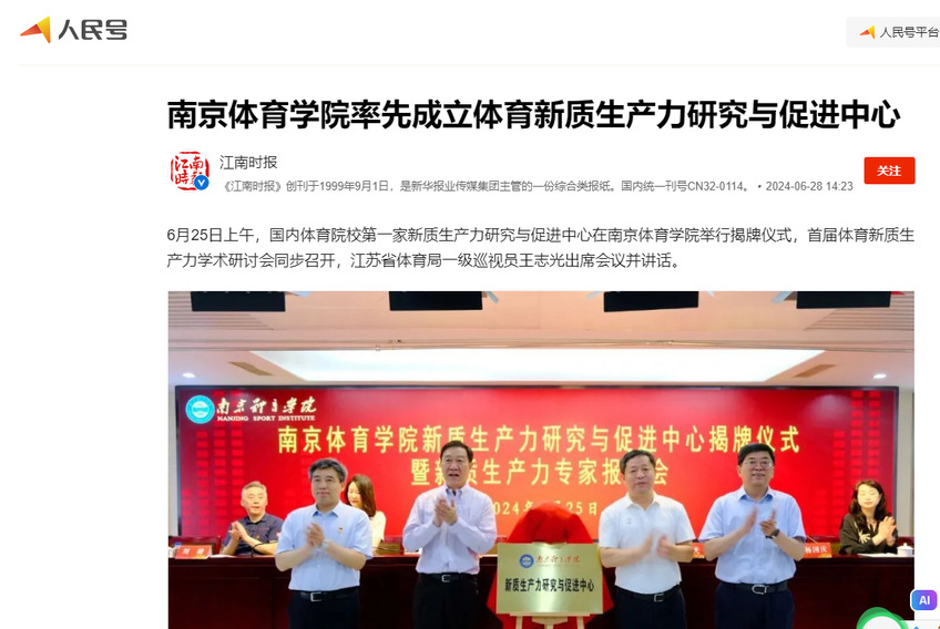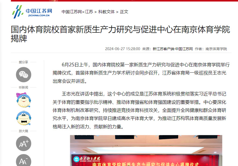【中国江苏网】国内体育院校首家新质生产力研究与促进中心在PA视讯集团入口揭牌https://jsnews.jschina.com.cn/kjwt/202406/t20240627_3425510.shtml