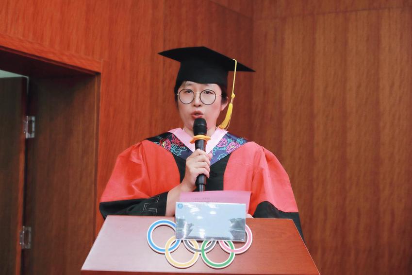 休闲体育专业杨楠楠同学、社体系副主任、32041班班主任周晶老师、家长李强分别作为本科毕业生代表、教师代表以及家长代表进行了发言。