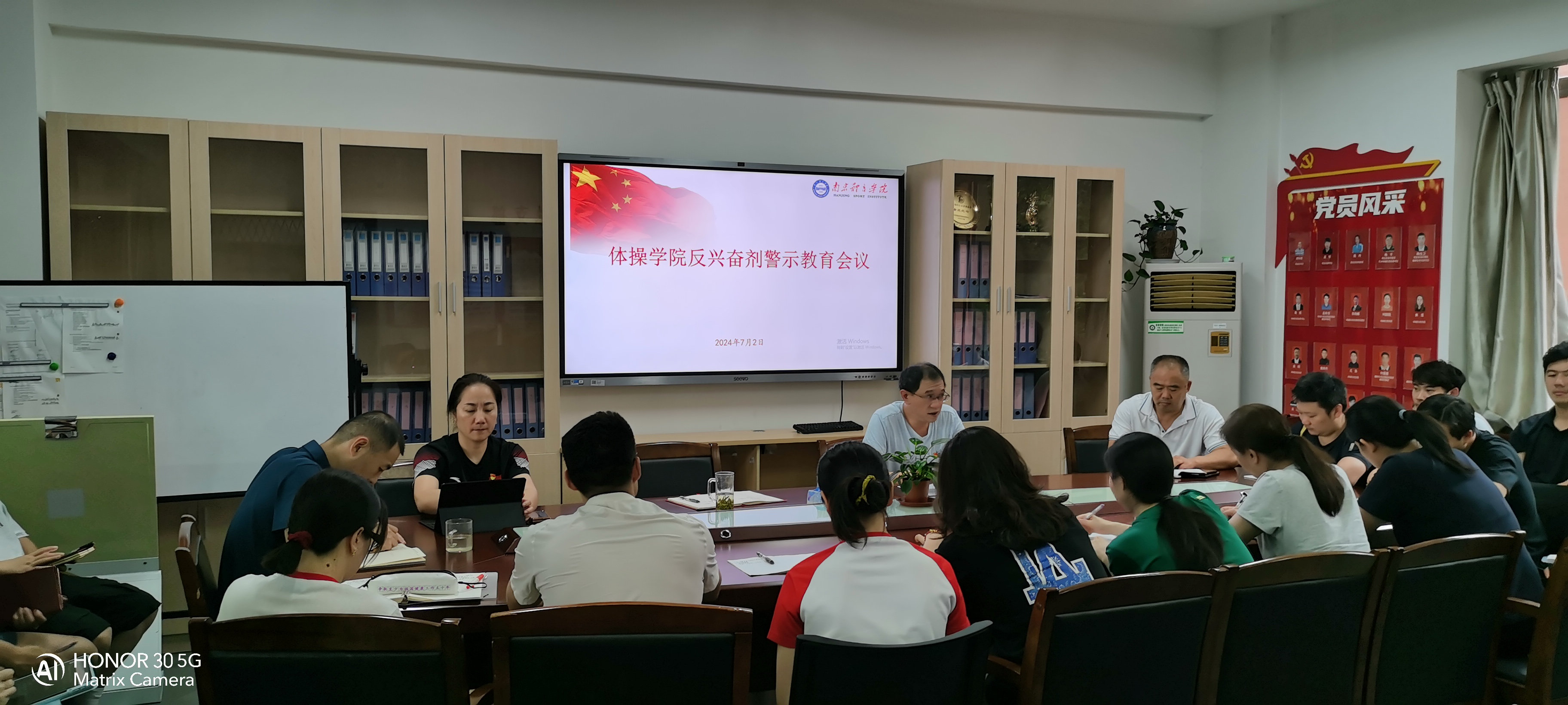反兴奋剂工作是竞技体育事业健康发展的生命线,也是要牢牢守住的底线、红线。为进一步提高教练员、管理干部反兴奋剂责任意识,充分发挥教练员、管理干部在反兴奋剂工作中的重要作用,7月2日,体操学院召集全体教职工召开反兴奋剂警示教育会议。体操学院党总支书记谢长虹主持会议。