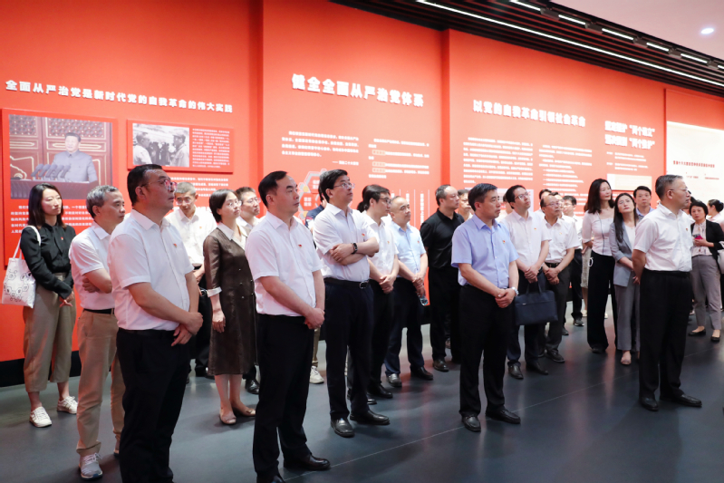 在讲解员的带领下,全体党员干部依次参观了“举旗定向 指路领航”“以案明纪 挺纪在前”“以案促改 系统施治”“以案为鉴 警钟长鸣”四个主题展厅。详实生动的图文影像资料,让大家重温了中央八项规定精神、党的六项纪律、廉洁自律准则,以及十类主要问责情形等党规党纪,展现出以习近平同志为核心的党中央坚持党要管党、勇于自我革命和一以贯之推进全面从严治党的决心。围绕新修订的纪律处分条例,展区通过一件件典型腐败案例、违纪违法人员的忏悔,让参观的党员深受触动、发人深省。