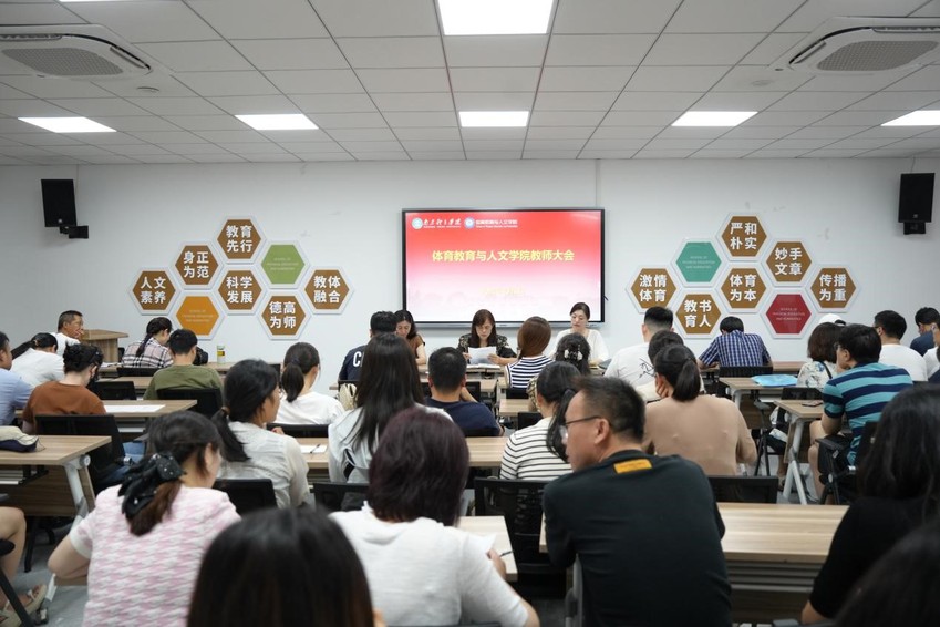 7月5日上午,体育教育与人文学院召开期末教师大会。体育教育与人文学院院长沈鹤军、党总支副书记喻菊、副院长康晓磊出席会议,学院全体教师参加会议。会议由副院长康晓磊主持。