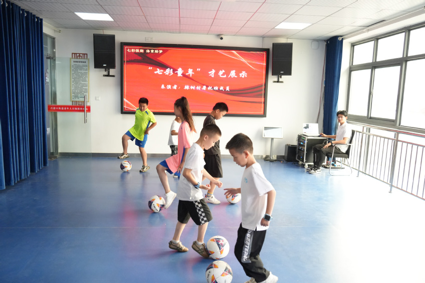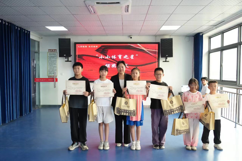 喻菊、胡晓、杜晓芹分别为“优秀志愿者”和“小小体育之星”颁发证书。爱心暑托班学子们用自己的精彩演出展示了他们在体育助梦项目中的所学所感。《花样宝贝》《快乐足球》《小小篮球大大梦想》《别样夏天》的演出兼具表演和运动锻炼的性质,赢得了台上台下的热烈掌声。