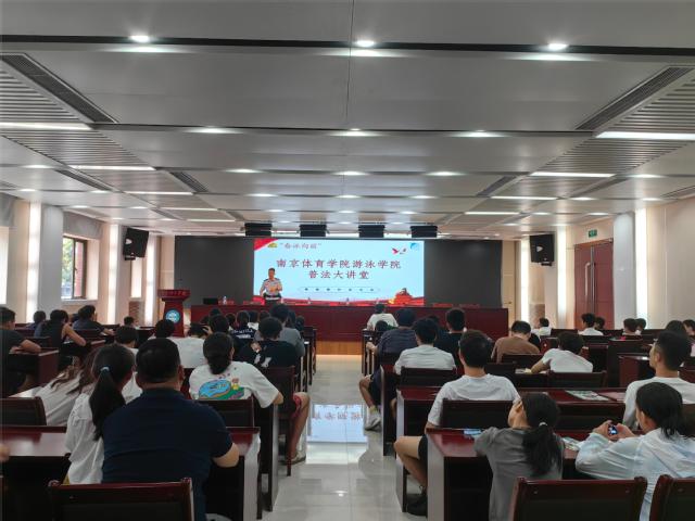 为深入学习贯彻习近平法治思想,进一步加强运动员法治教育,提高运动员法治观念,7月17日上午,游泳学院邀请南京市公安局玄武分局梅园新村派出所钱培俊警官在行政楼101会议室围绕“校园欺凌危害和防范”、“防范电信网络诈骗”等知识及法律法规开展普法讲座。游泳学院党总支书记骆晓娟主持讲座。游泳学院全体运动员、管理干部参加学习。
