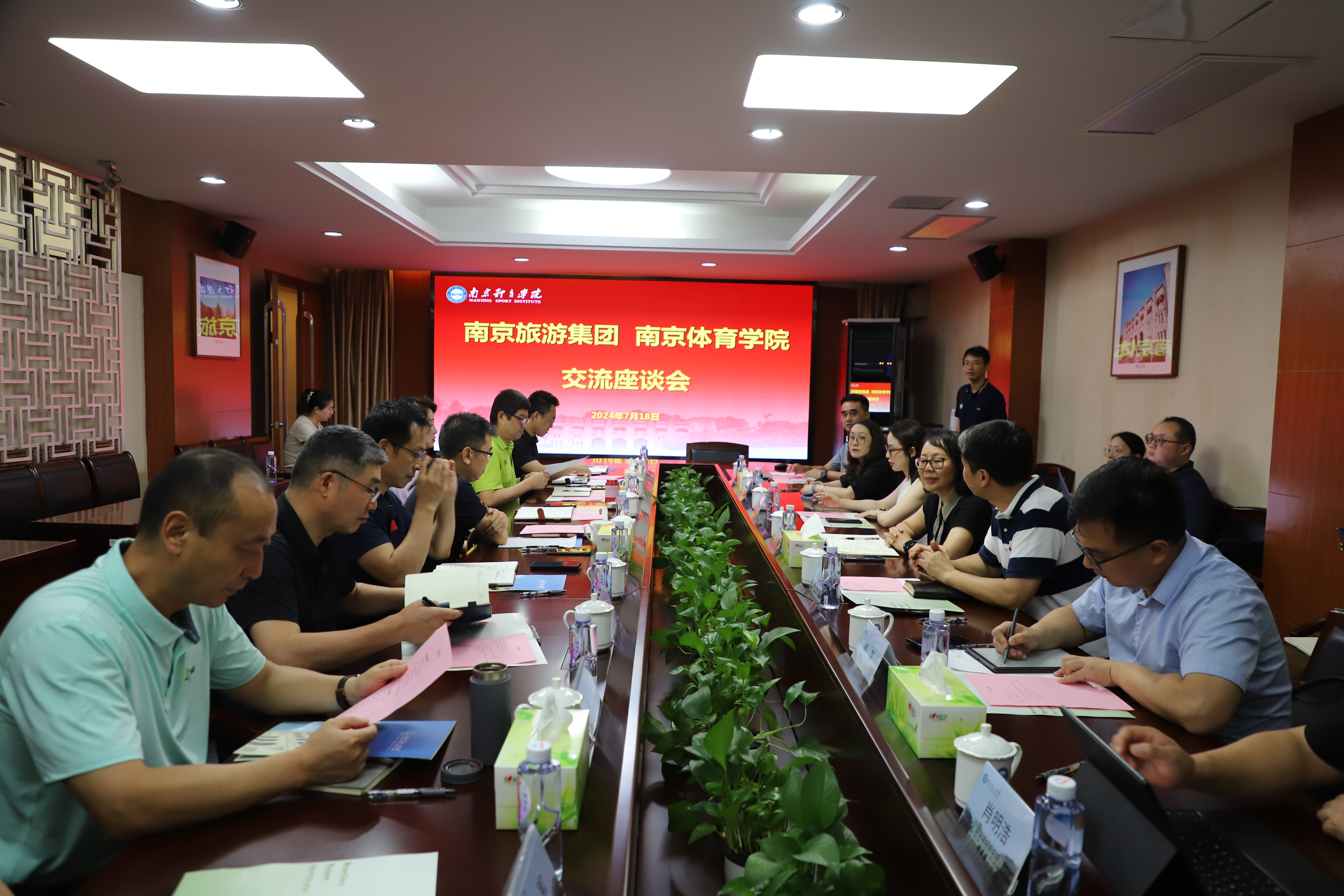 7月18日上午,南京旅游集团副总经理钱洁一行来PA视讯交流座谈。党委副书记兰亚明,党委常委、副校长鲍勤出席交流会,旅游集团品宣部、项目建设部、钟山公司有关负责人,PA视讯党政办、计划财务处、资产管理处、后勤处(基建处)、资产经营公司负责人参加会议。